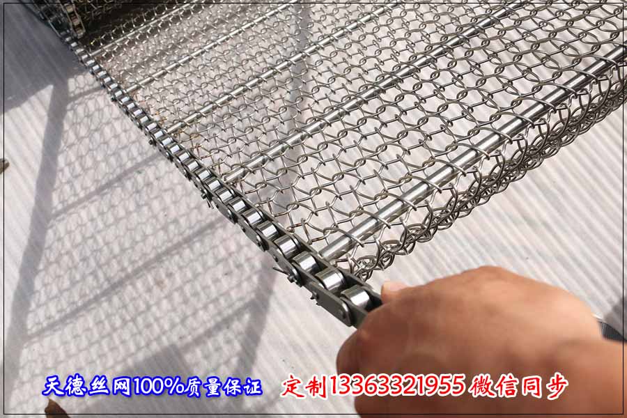 天德溫馨提示: 不銹鋼輸送帶屬于非標準件,我們將根據(jù)你提供的規(guī)格長寬,材質(zhì),不銹鋼絲線徑,編制結構尺寸,支軸直徑,支軸間距,鏈條型號等數(shù)據(jù)制作。