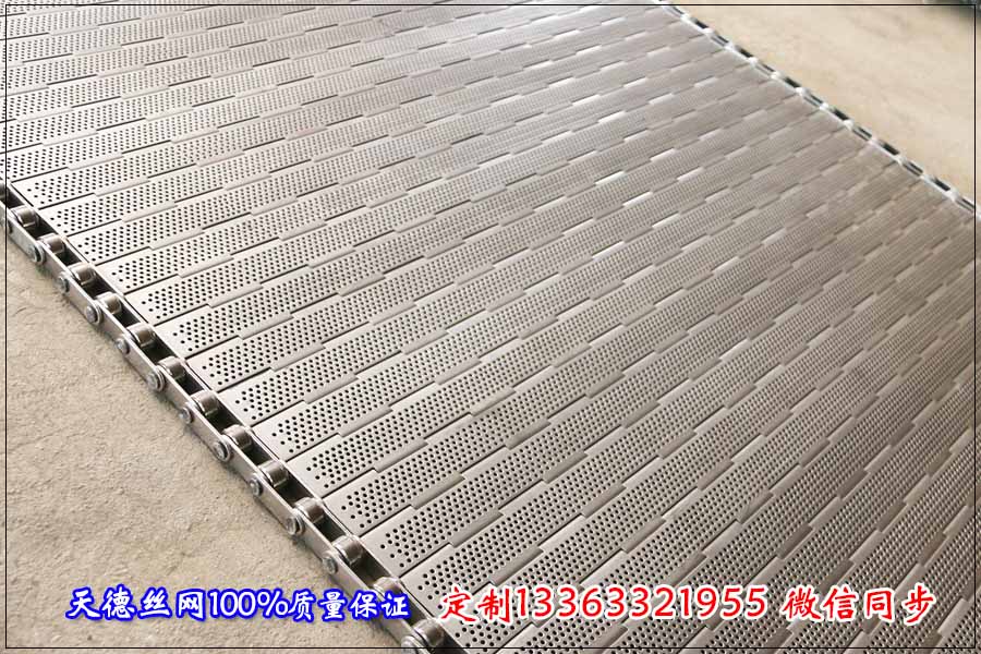 下面是面包片烘干輸送所需不銹鋼輸送帶的具體規格,如果您剛好需要訂購沖孔式不銹鋼輸送帶希望能對您有參考 幫助。 鏈板是不銹鋼輸送帶的凈寬度為1000mm,板厚1.5mm,鏈條節距38.1mm,串桿的直徑6mm,不銹鋼輸送帶表面進行 沖孔直徑為5mm,另外在鏈板的兩側安裝擋板,擋板高度為5cm,材質為不銹鋼304耐高溫耐腐蝕。