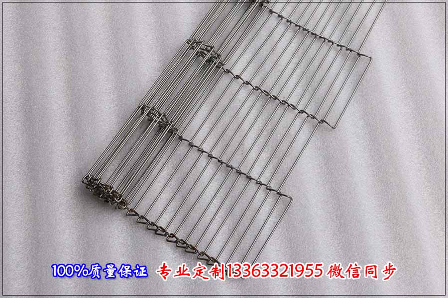 乙字網(wǎng)輸送帶:涼皮乙字網(wǎng)的總寬度為700毫米,這700毫米分為5個(gè)小格子,每個(gè)小格子的寬度為140毫米,每個(gè)小格子的長(zhǎng)度為5毫米,也是每個(gè)小格子的孔徑。絲徑采用1.5毫米,整條帶子采用不銹鋼304材質(zhì)。完全符合食品行業(yè)的要求,保證張總加工的涼皮的質(zhì)量。