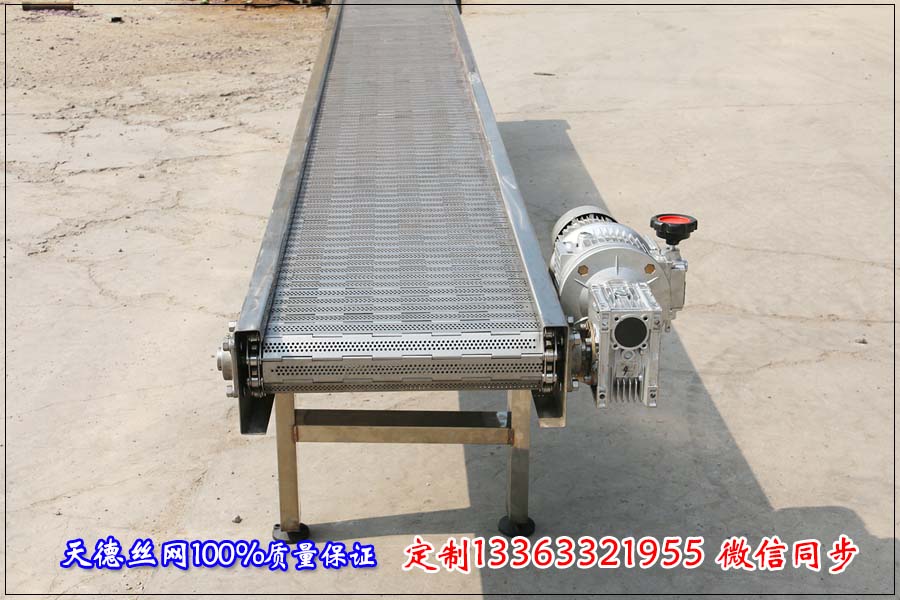 河北天德絲網制品有限公司生產鏈板輸送機、輸送網帶、網帶輸送機、不銹鋼輸送機、鏈條輸送帶、鋼絲編織網帶:13363321955 http://m.lishumiaopf.com/