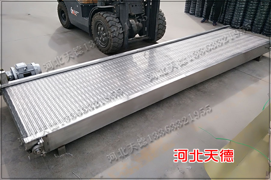 尾部裝配的螺旋拉緊裝置應調整適宜,保持鏈板輸送帶具有正常工作的拉力。看管人員觀察輸送帶的工作情況,局部損壞的地方,應視其破損程度(既是否 對生產造成影響)而決定是不是立即更換或待檢修時更新的。對拆下的鏈板輸送帶應視其磨損程度而另作它用。