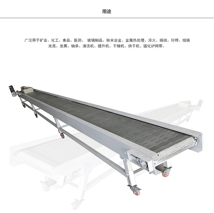 鏈板輸送帶:是采用不銹鋼板沖壓成型,鏈條傳動,每節由6-10mm支撐桿連接,其運動平穩、力量大,適合用于輸送細小的高密度物件,輸送過程中運轉平穩,安裝更換方便,成本高,使用壽命較長。