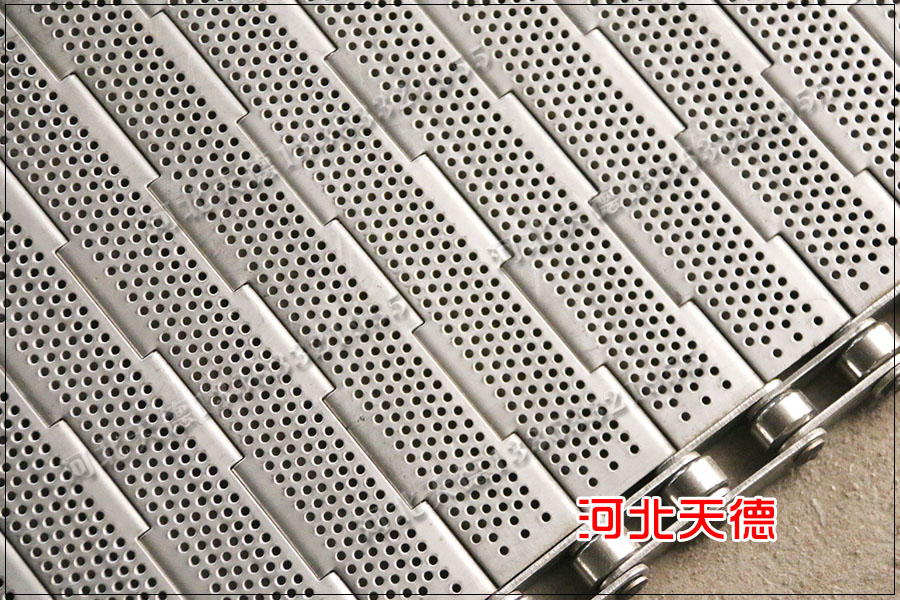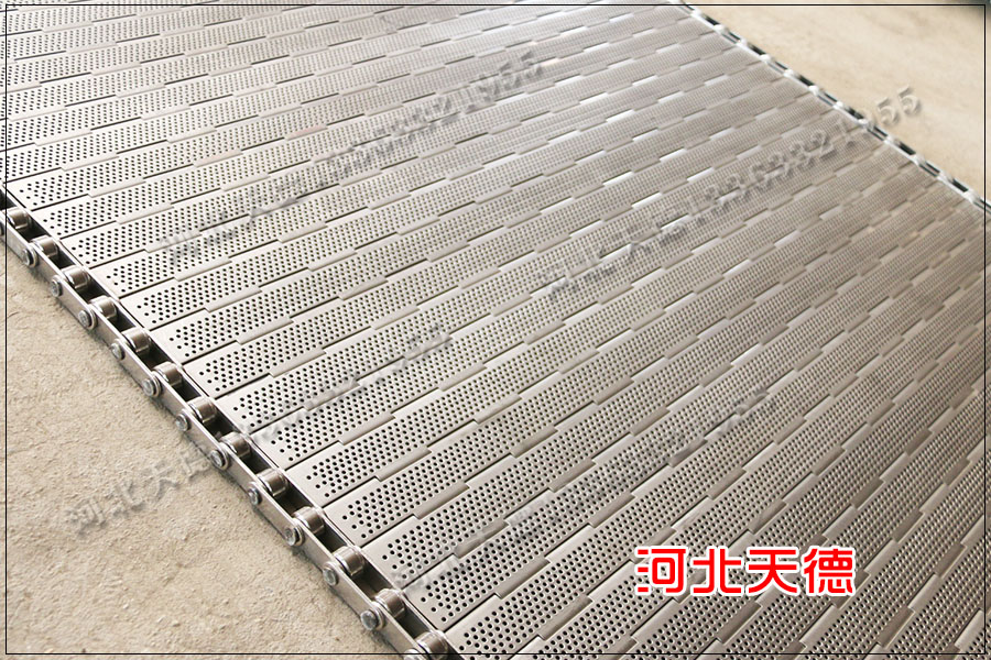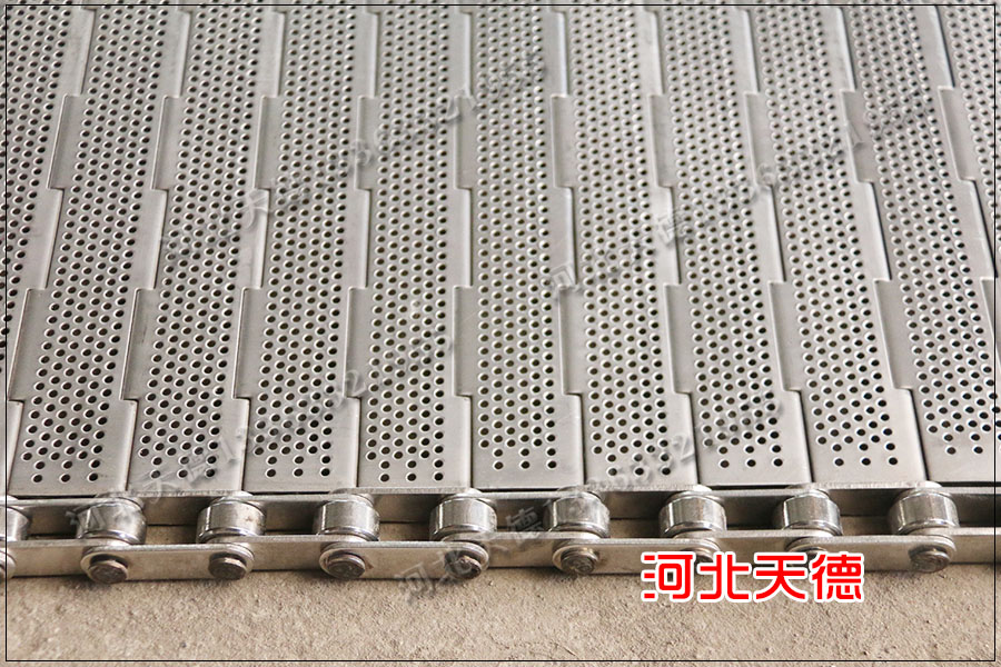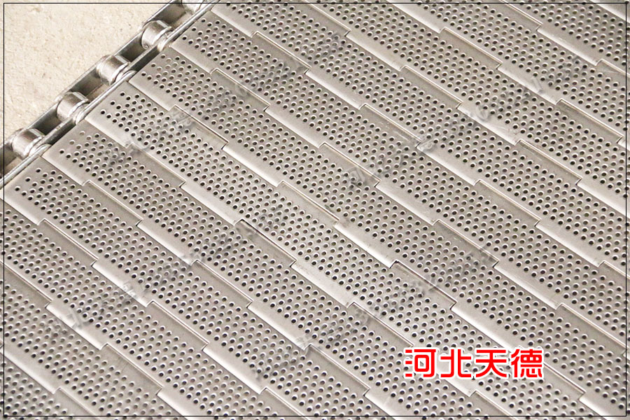 打孔輸送鏈板廣泛的應(yīng)用在烘干行業(yè)和清洗行業(yè)中,因?yàn)榇蚩纵斔玩湴蹇梢栽诤娓尚袠I(yè)中使用可以增加透氣性,提升烘干產(chǎn)品的速度,用在清洗行業(yè)中可以淋水,保證在輸送的過程中將多余的水分淋出去。