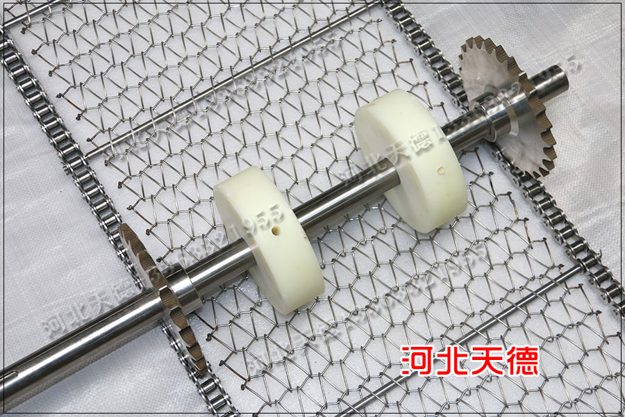 鏈桿的間距為10節一段,采用1.2毫米的不銹鋼絲編織孔徑為15*20毫米。只要這個孔的大小能夠保證青菜不會漏下去就可以。