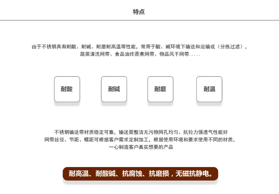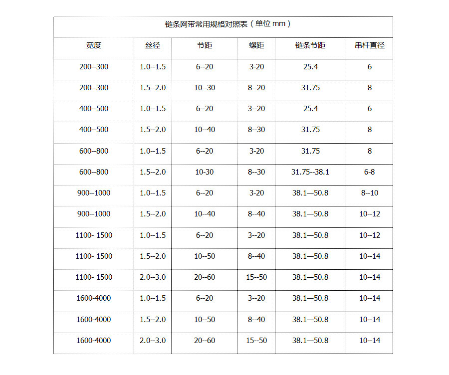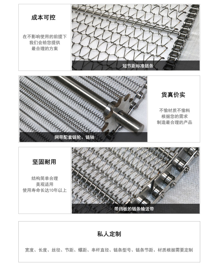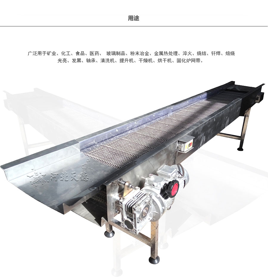 廣泛用于玻璃制品行業(yè)的退火爐網(wǎng)帶、烤花爐網(wǎng)帶等。食品加工行業(yè)、脫水蔬菜、速凍食品單凍機(jī)前處理網(wǎng)帶、鏈網(wǎng)。粉末冶金、金屬熱處理、淬火、燒結(jié)、釬焊、焙燒、光亮、發(fā)黑、軸承、滲碳高溫爐網(wǎng)帶、擋板式網(wǎng)帶、涂裝烘干線輸送網(wǎng)帶、泡沫鎳還原生產(chǎn)線網(wǎng)帶,清洗機(jī)、提升機(jī)、干燥機(jī)、烘干機(jī)、固化爐網(wǎng)帶。