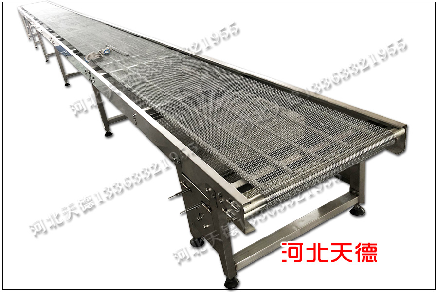 下面這一臺乙型網帶輸送機是湖北客戶定制的,用來輸送輕載物品,該設備采用的是乙型網帶來傳送,這種金屬輸送帶不帶鏈條,成本低。