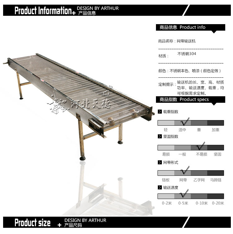 采用不銹鋼網(wǎng)帶作為載體,適用于各種食品行業(yè)的烘干、去濕、冷凍等、熱處理等;不銹鋼制成,具有耐高溫、便于清洗等特點。