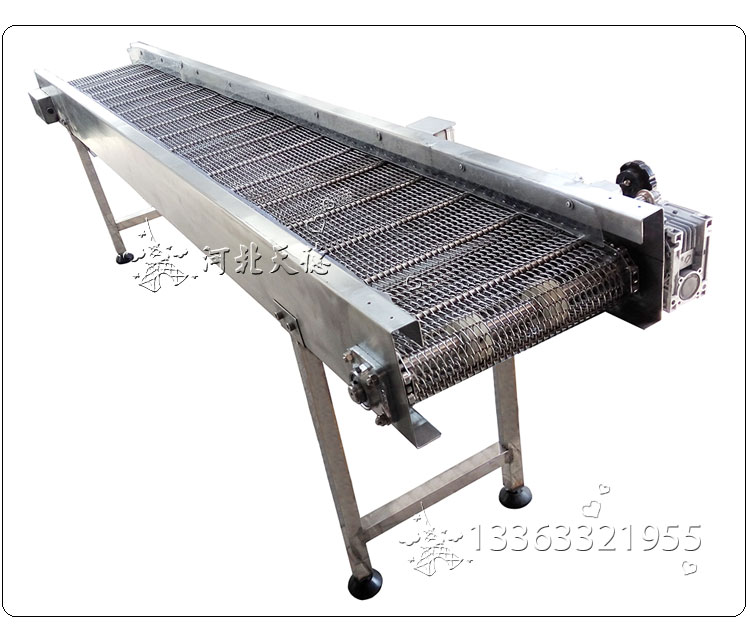 網帶輸送機主要用于物料的輸送,它采用不銹鋼制成的網帶作為載體運用輸送帶的連續或間歇運動來輸送各種輕重不同的物品,適用于各種食品行業的烘干、去濕、冷凍、清洗、熱處理,可輸送各種紙箱、包裝袋等單件重量不大的件貨,用途廣泛。 輸送帶的材質為不銹鋼,因而其強度高,伸縮性小,不易變形,易保養,而且衛生、耐腐蝕或惡劣環境性較強,使用壽命長。適用于食品、副食品、冷凍水產品的加工生產線、包裝輸送線和電子配件的加熱、烘烤的輸送。也可用于制藥、日用化工等行業。