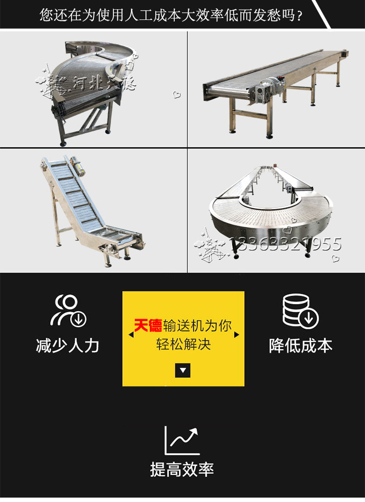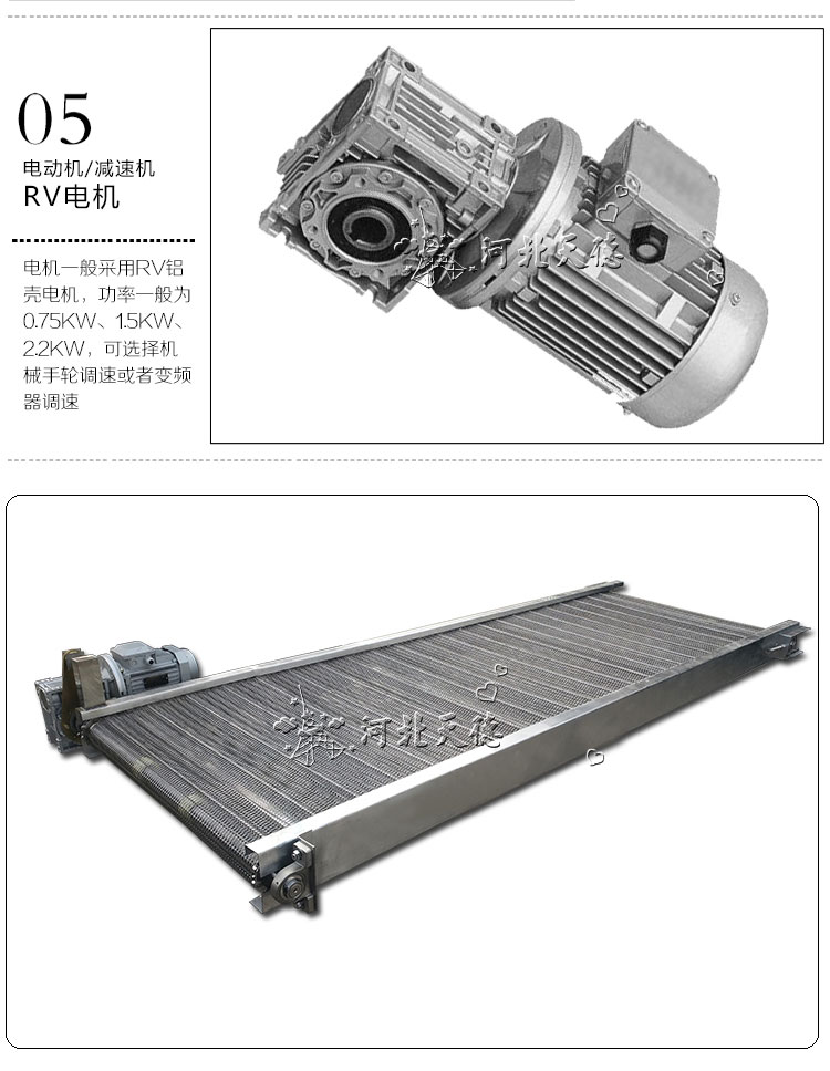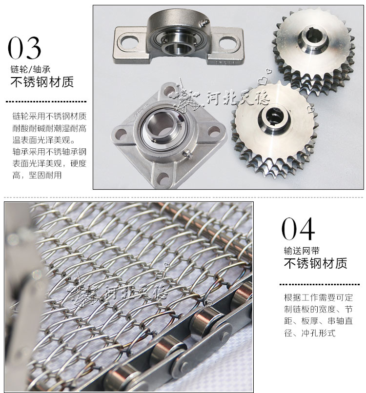 網(wǎng)帶輸送機(jī)結(jié)構(gòu)形式: 水平直線輸送、提升爬坡輸送、轉(zhuǎn)彎輸送等多種形式,輸送帶上還可增設(shè)提升擋板、側(cè)擋板等附件,能滿足各種工藝要求。輸送機(jī)材質(zhì):有A3低碳鋼、201不銹鋼、304不銹鋼等。