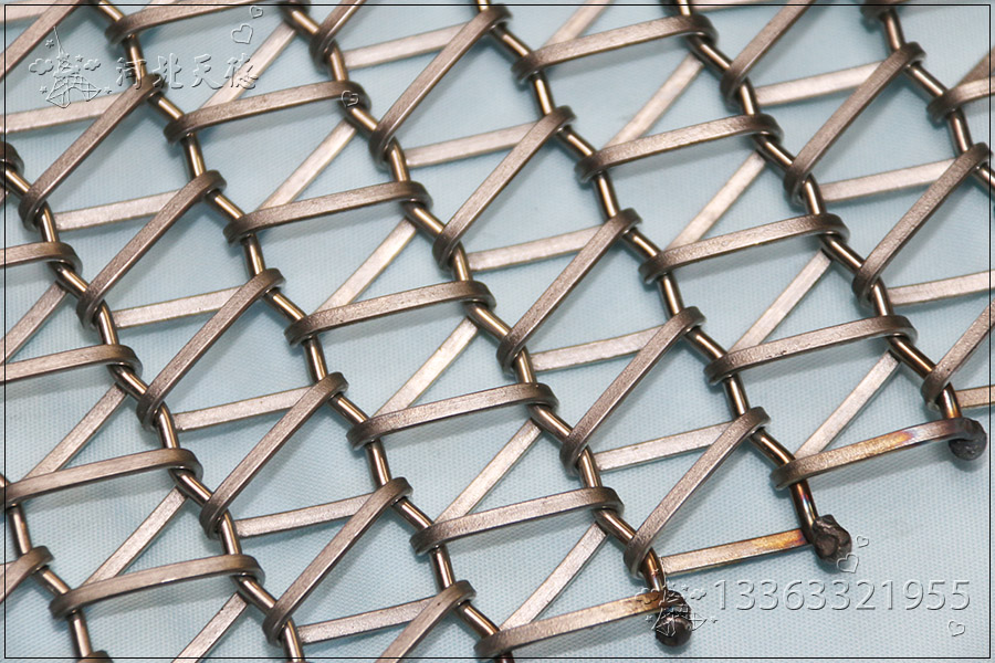 軋扁絲雙旋不銹鋼網帶:是先將絲壓扁在進行編織的網帶,是由左螺旋或者右螺旋盤條與一根穿條鏈接焊邊而成的,